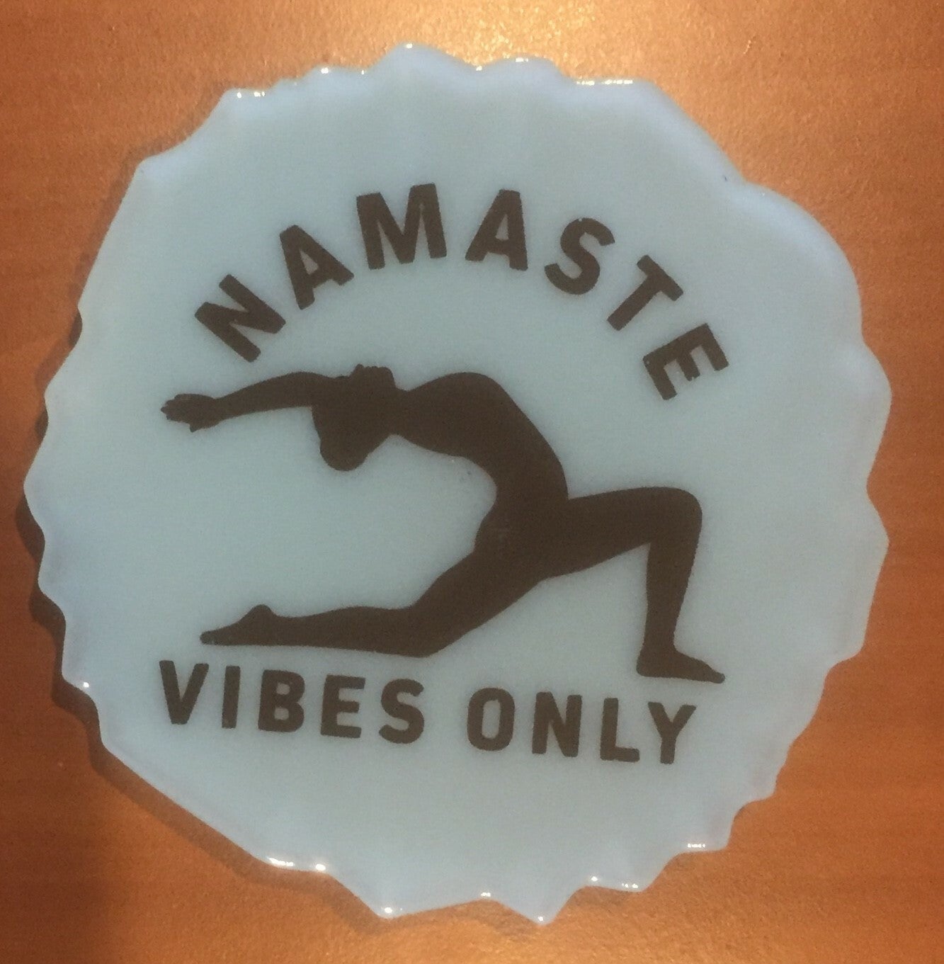 Handgemaakte onderlegger: " Namaste vibes only" ( Dionys design 7)