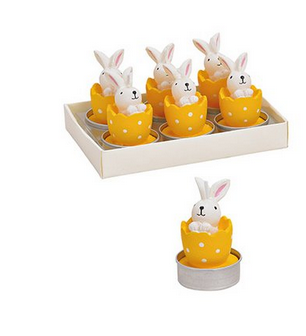 Waxinelicht set konijn in ei 4x6x4cm gemaakt van wax geel/ set van 6, (B / H / D) 14x6x9cm
